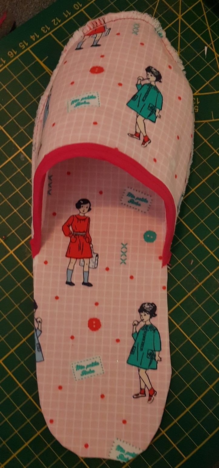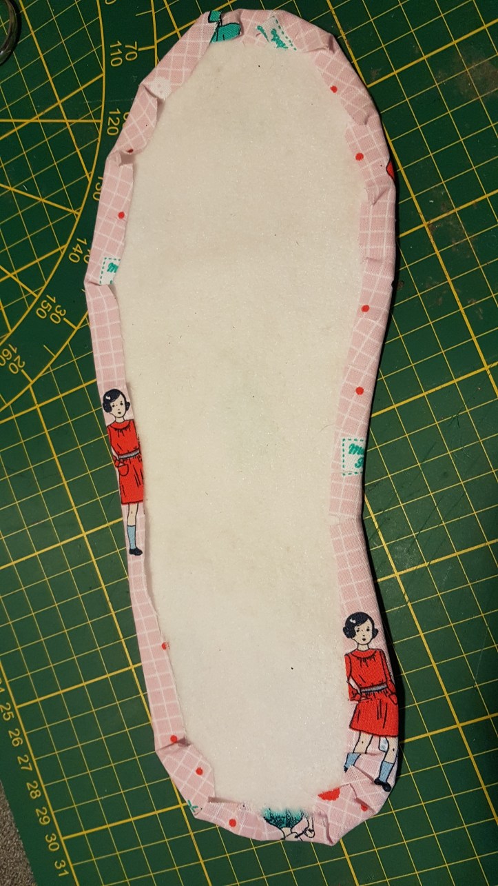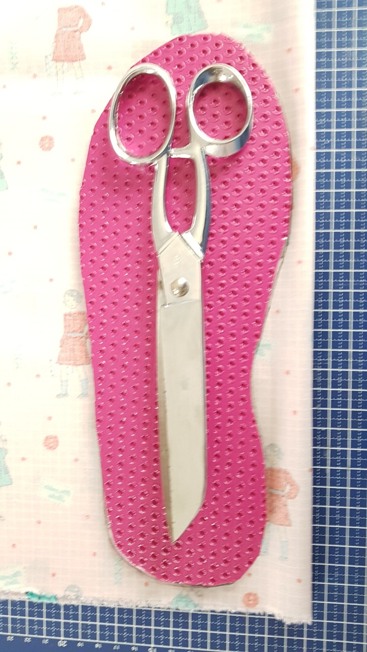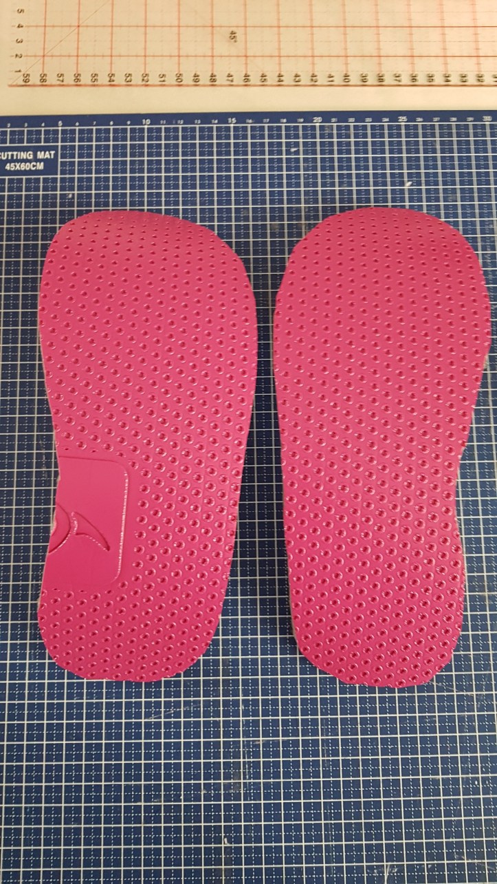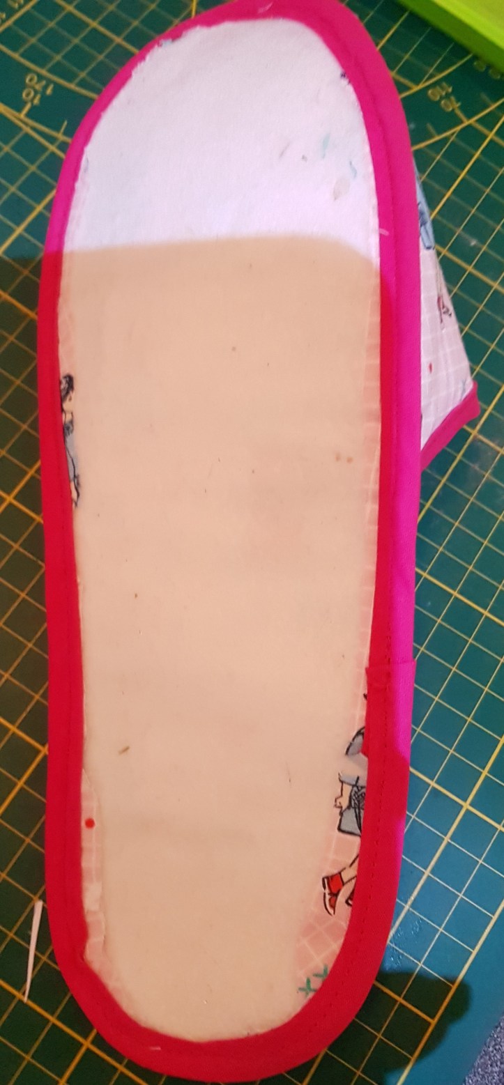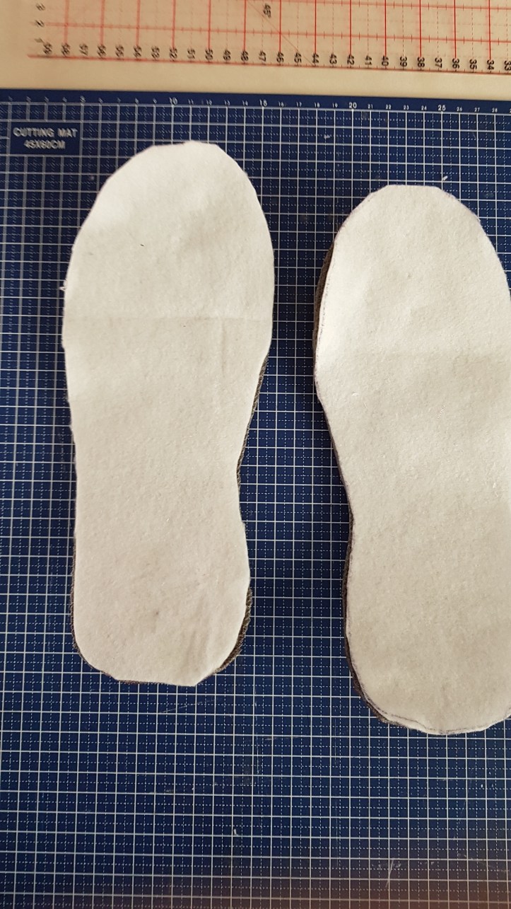 Pour les semelles j’ai pris un tapis de gym acheté chez decathlon depuis x temps que jai retrouvé dans mon placard je trouve parfait il y a un antidérapant et de la mousse antichoc parfait pour mes chaussons de tout les jours