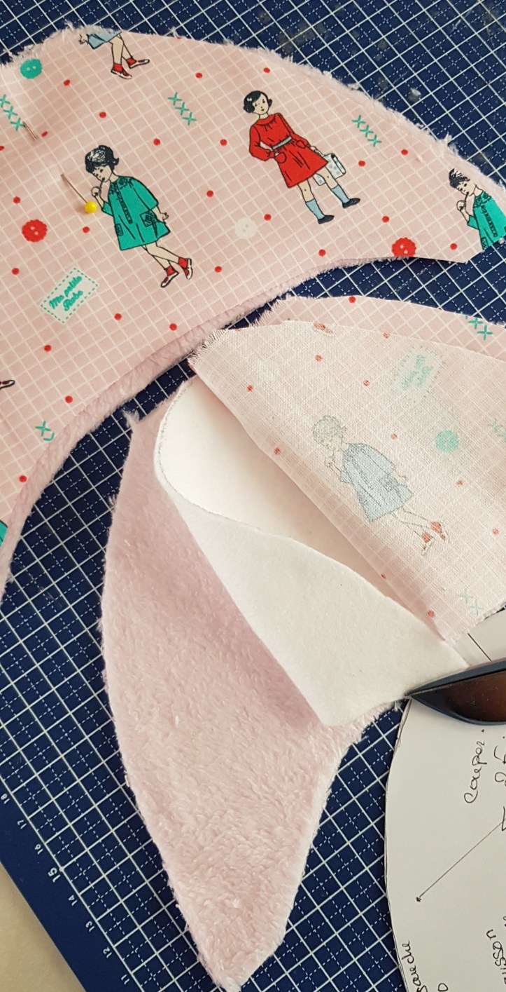 Ici j’ai collé le tissus de l’intérieur sur le molleton avec de la colle amovible ensuite cranter le tour et coller avec de la colle amovibles aussi